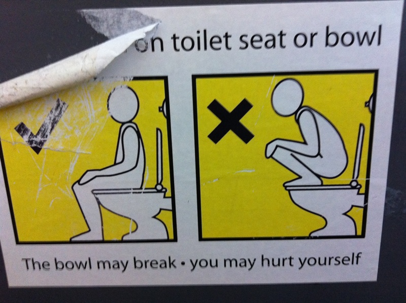 My first visit to the toilets at my University and this is what I saw! I couldn't stop laughing ;) And, seriously: you see these stickers in every toilet. Wasn't sure why, but found out quickly that the Asians are used to squat over a hole in the ground... Might not be a good idea with these western toilets ;)